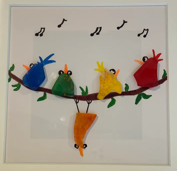 Anne, a Michigan native residing in Ann Arbor, brings a wealth of experience as a fused glass artist. Working with colored glass sheets, she cuts and shapes them into various motifs. With a lifelong interest in art, including jewelry, painting, mosaics, and candle making, Anne discovered her passion for fusing. Having studied with master artists, she continually challenges herself with new techniques and designs. Her favorites often involve landscapes, especially captivating Michigan birch tree scenes, inspired by the endless possibilities found in nature.